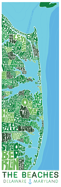 Delaware and Maryland Beaches Type Map – LOST DOG Art & Frame