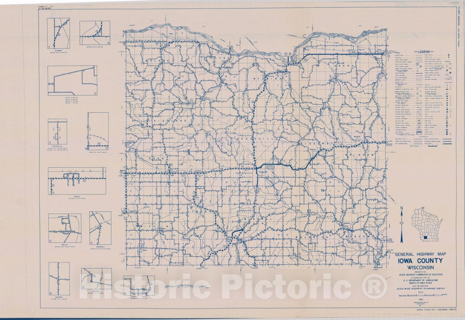 Map : Iowa County, Wisconsin 1937, General highway map County