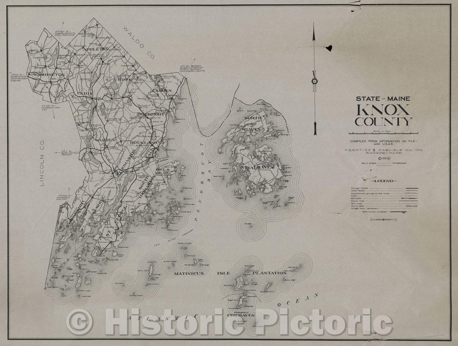 Historic Map : Knox County, State of Maine, 1932 , Vintage Wall