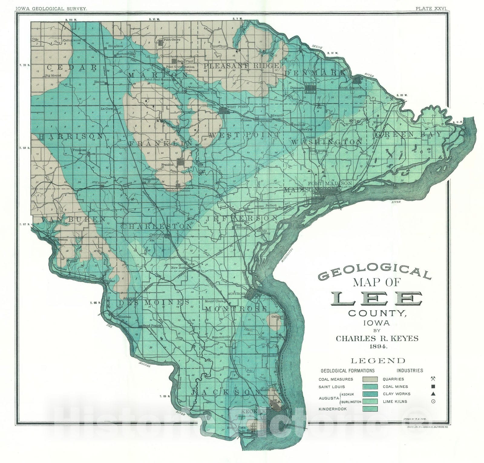Map : Geology of Lee County [Iowa], 1895 Cartography Wall Art