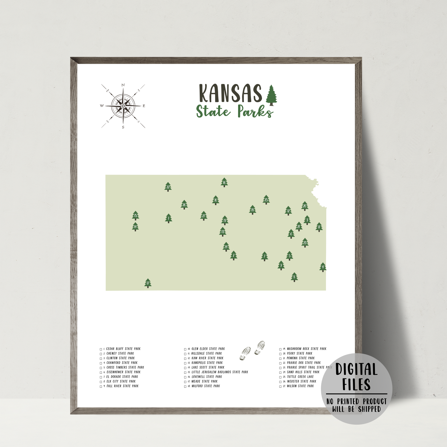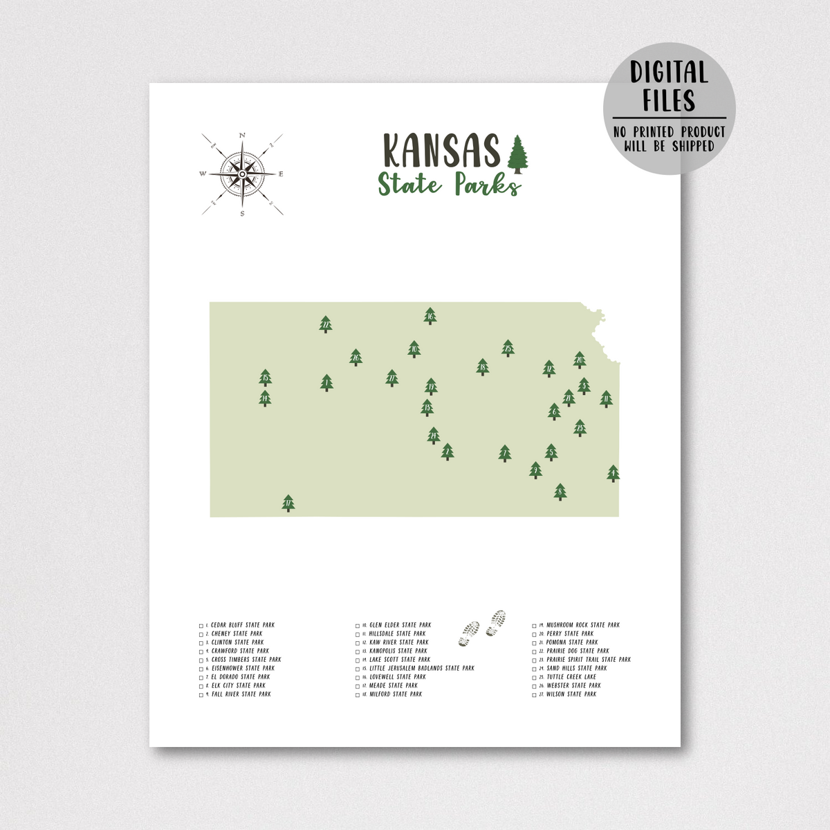 Kansas State Parks Map | Gift For Hiker | Kansas Map | Digital