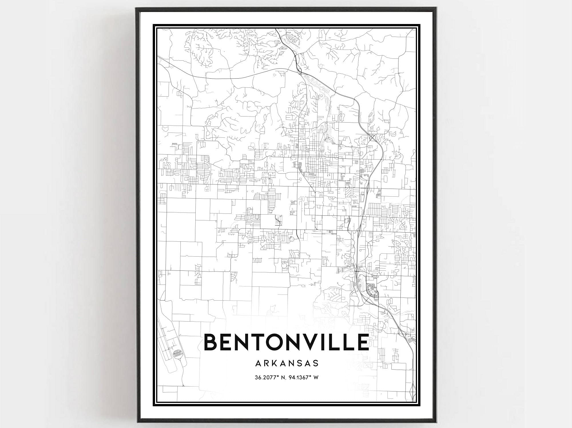 Amazon.com: Bentonville Arkansas Map Poster Print | Modern Black